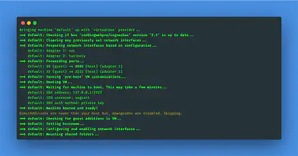 If you run into an issue you might not have git installed on your maschine. You can use this great installation guide: Installing Git . The next step is to go into the CognacBox folder and start the box.